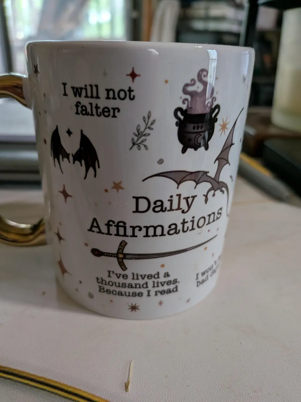 Infuse the power of fantasy and romantasy quotes into your daily rituals with this beautiful book-inspired affirmation mug. This beautifully crafted mug not only holds your favorite drinks but also connects you to the your favorite books with messages of affirmation and self-love.
