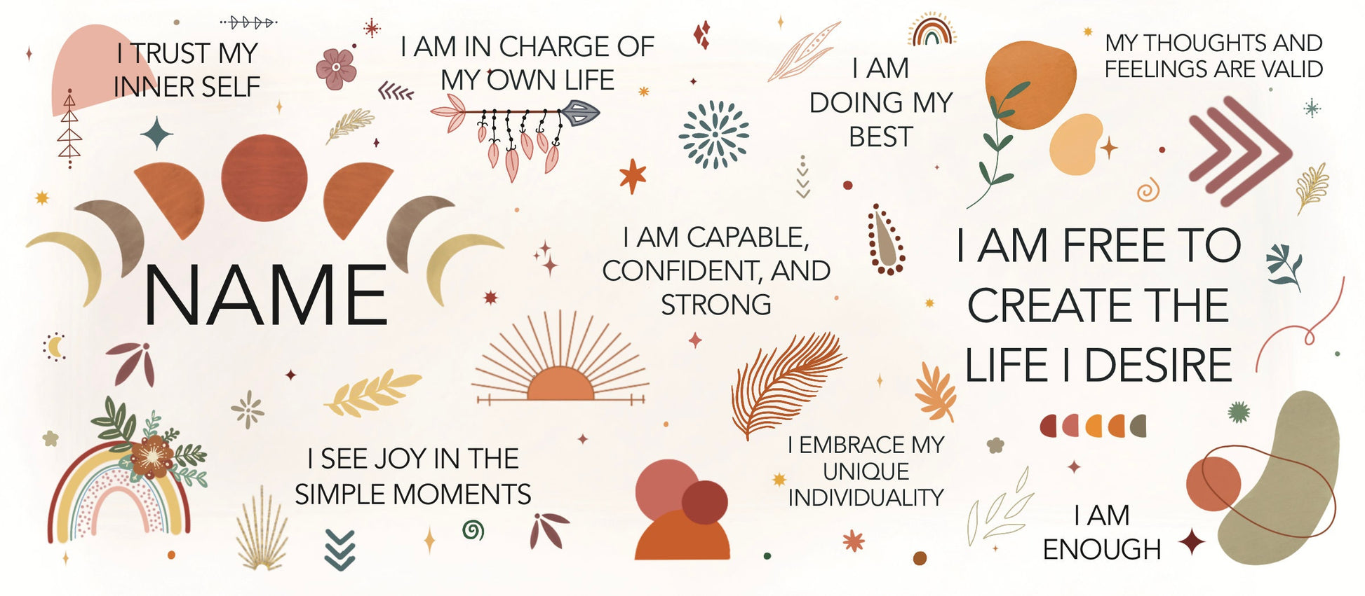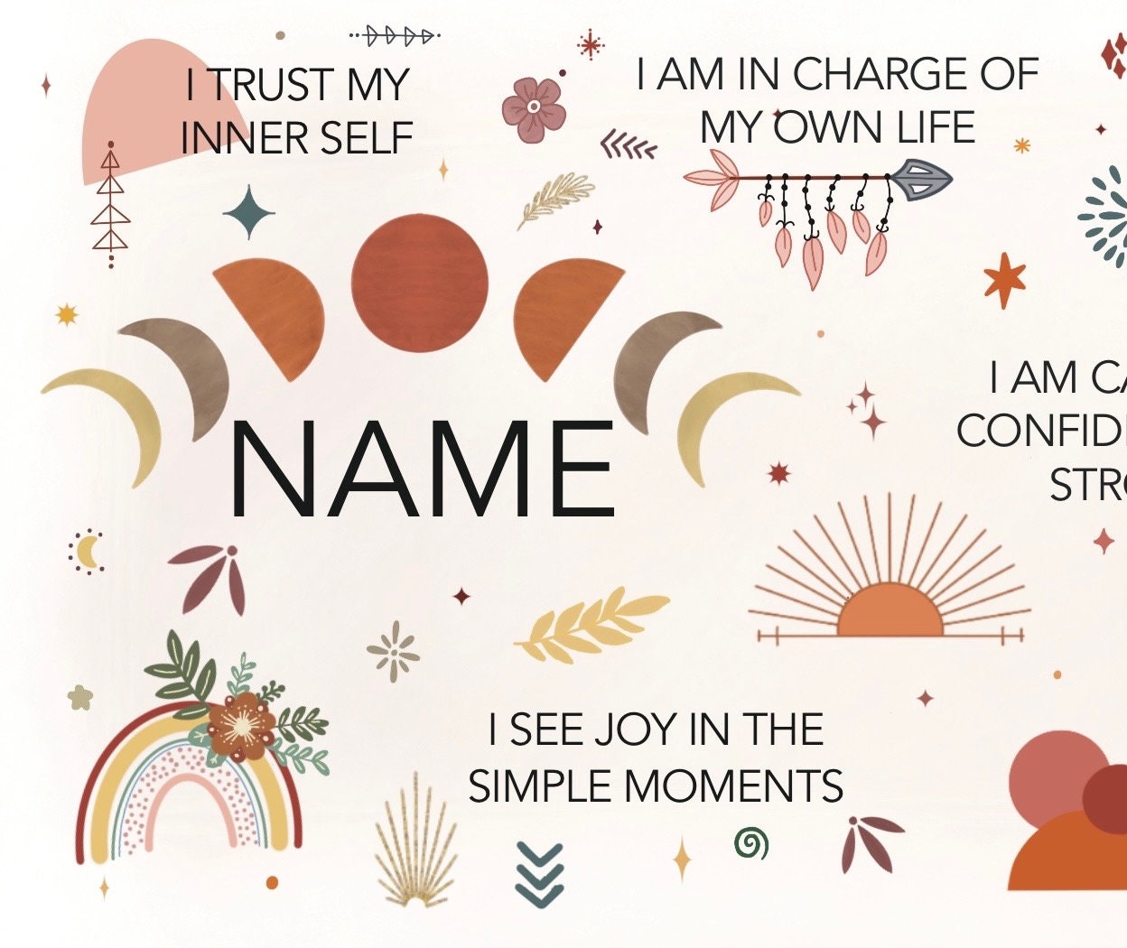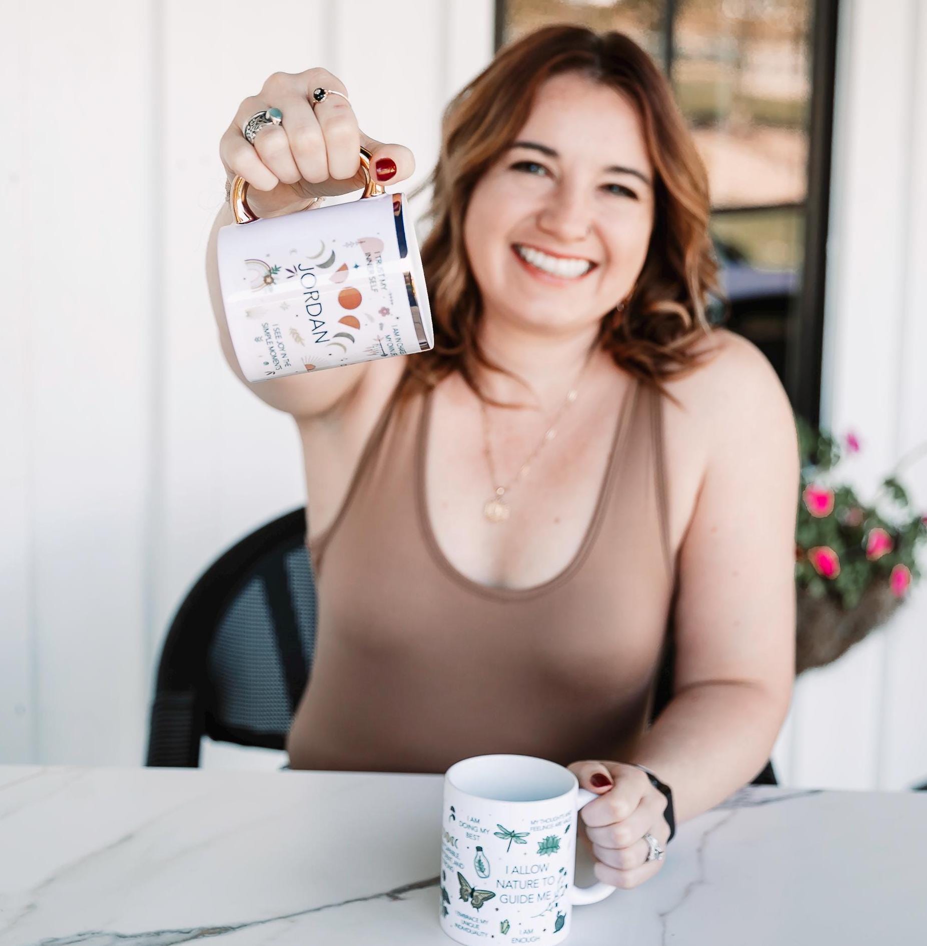 Elevate your morning ritual with a touch of boho inspiration. This personalized free spirited affirmation mug is designed to infuse positivity into every sip. This beautifully crafted mug not only holds your drink but also radiates messages of affirmation and self-love. These 11 oz. mugs are the perfect size for coffee, tea, and your other favorite drinks. They are 3.75" high x 3" diameter (not including handle) and dishwasher safe!