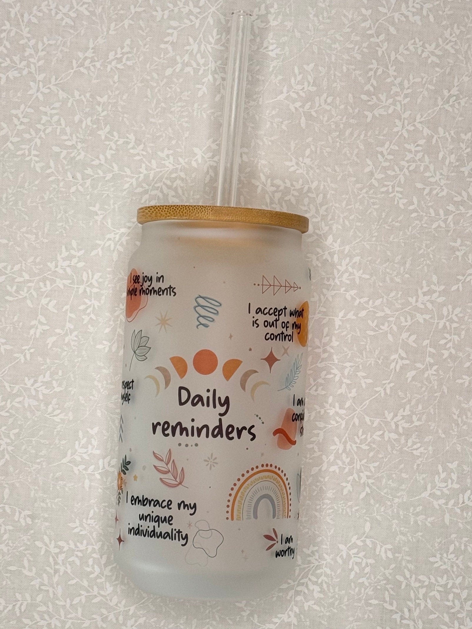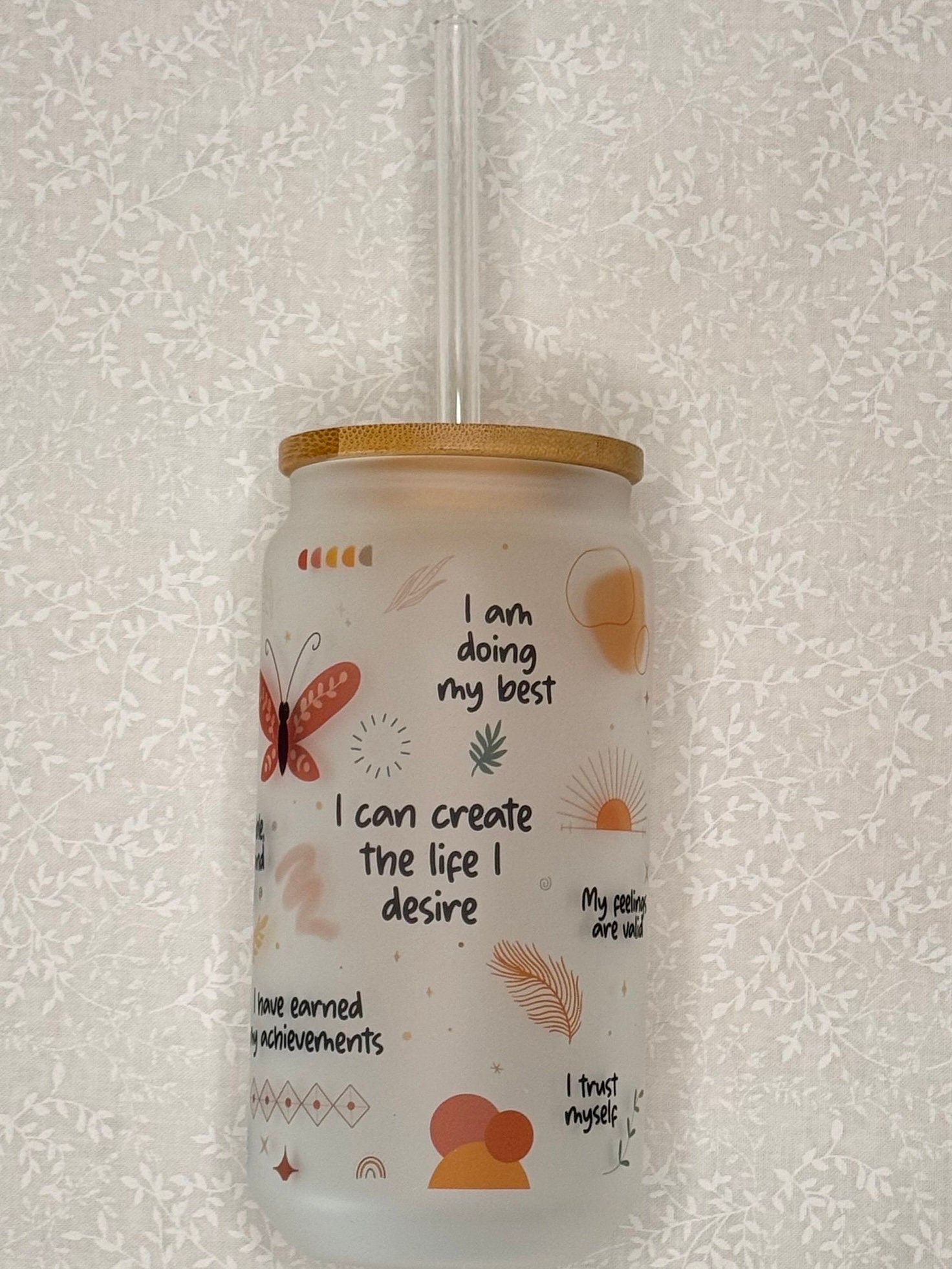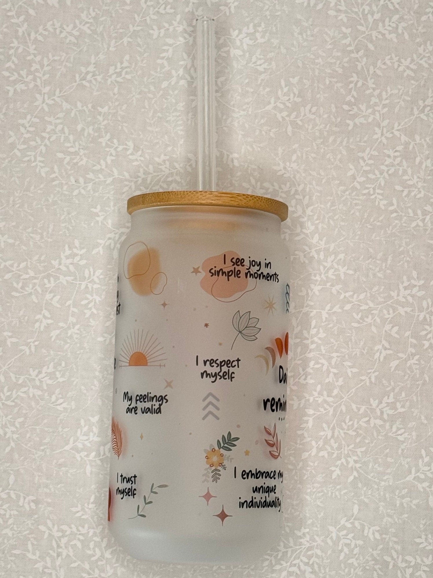 It all starts with some creativity in Procreate, where I hand-draw designs and place some of my favorite affirmations. Next up, I grab my frosted glass tumbler and prep my trusty Cricut mug press. Using a sublimation printer, I bring the design to life and carefully wrap the tumbler with heat-resistant tape and butcher paper for extra protection. I then press the tumbler for 4 minutes, rotate it, and repeat until itβs perfectly pressed on all sides.