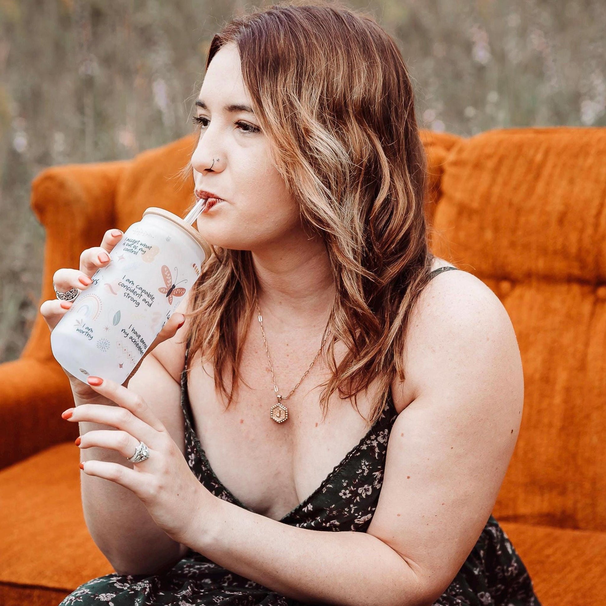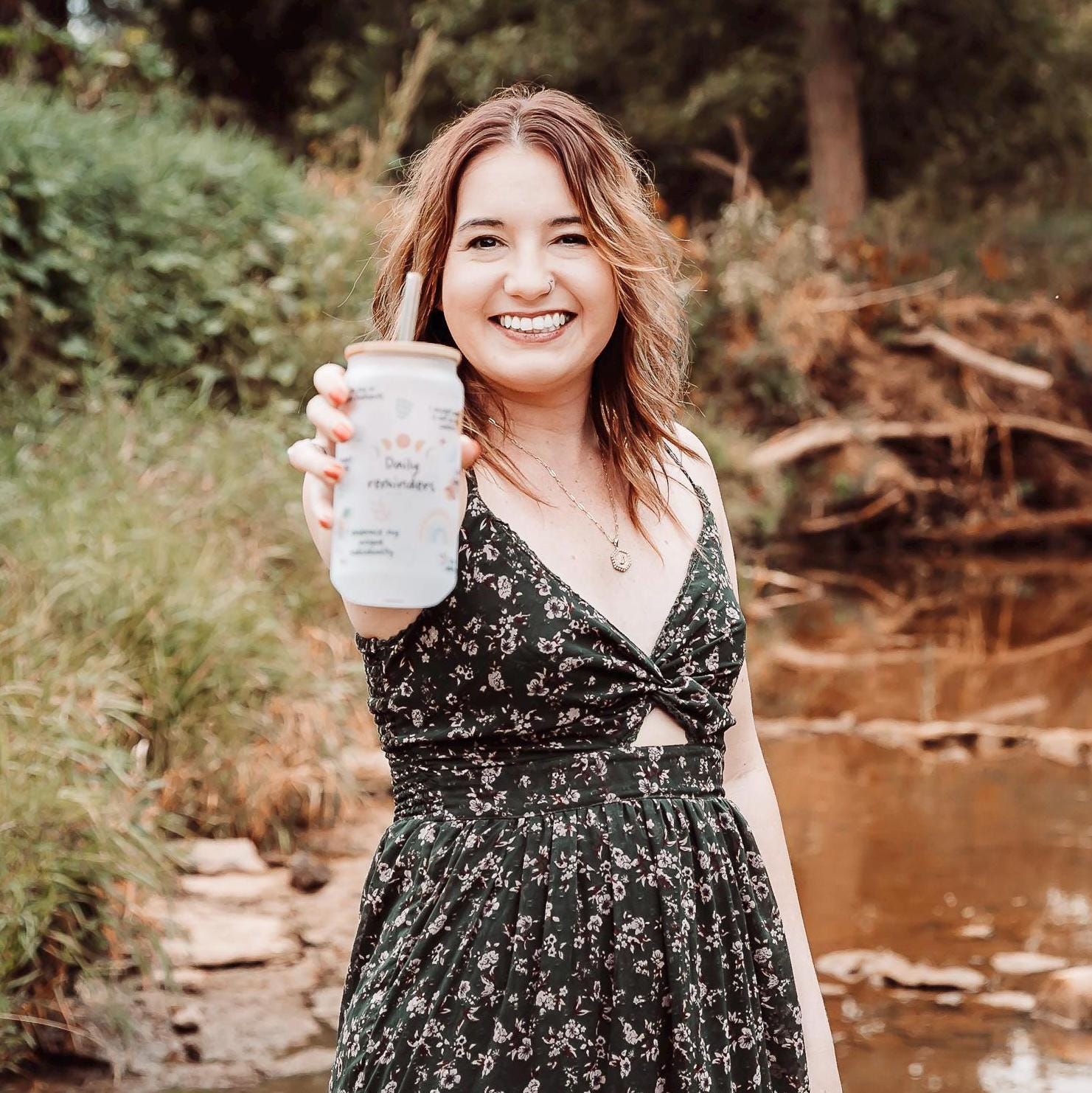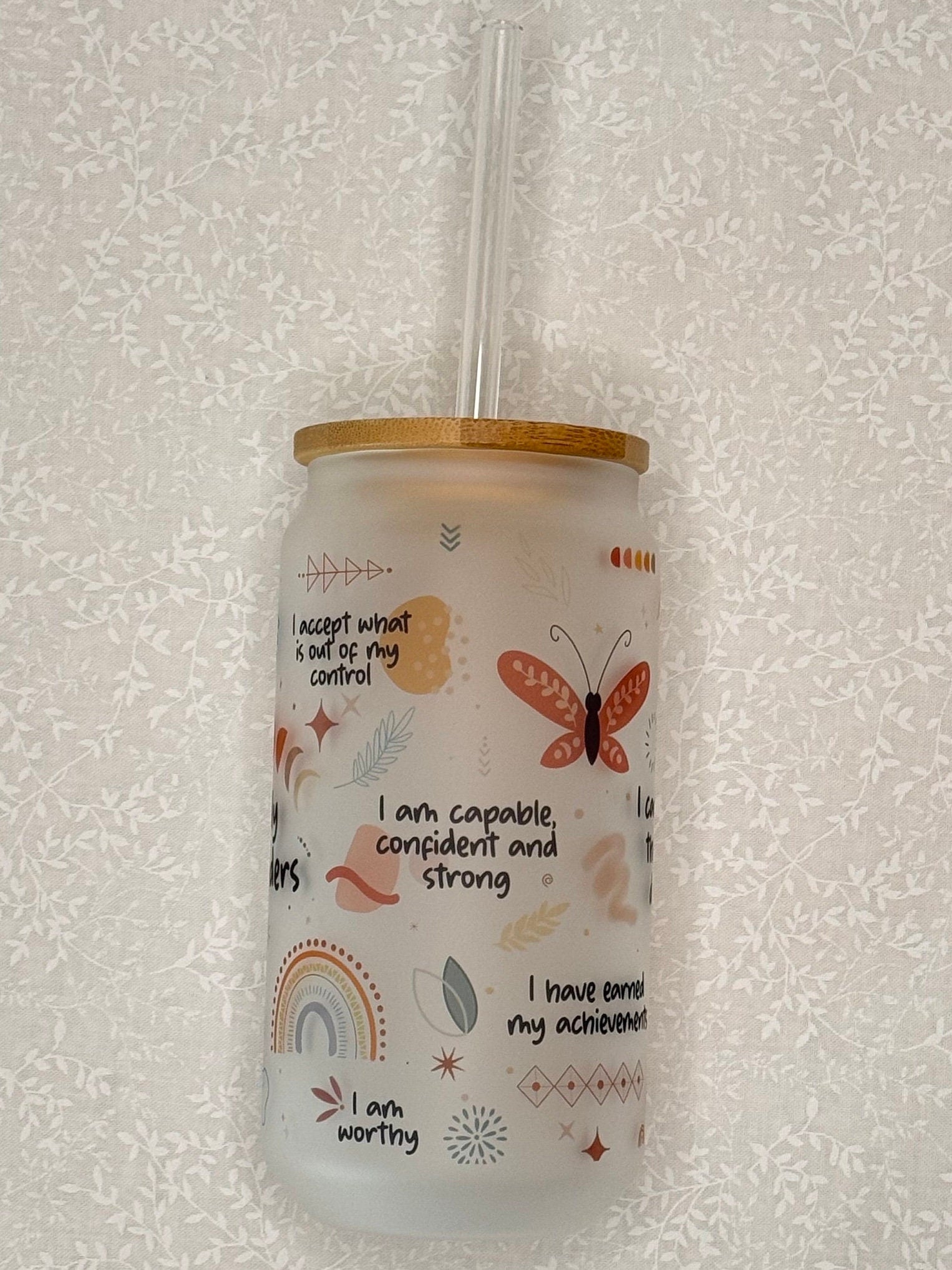 It all starts with some creativity in Procreate, where I hand-draw designs and place some of my favorite affirmations. Next up, I grab my frosted glass tumbler and prep my trusty Cricut mug press. Using a sublimation printer, I bring the design to life and carefully wrap the tumbler with heat-resistant tape and butcher paper for extra protection. I then press the tumbler for 4 minutes, rotate it, and repeat until itβs perfectly pressed on all sides.