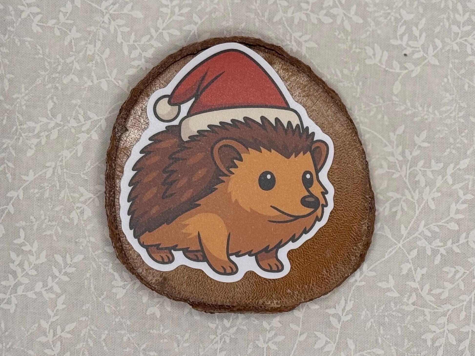 This cheerful little hedgehog is all dressed up for the holidays, sporting a bright red Santa hat and its signature coat of cozy quills. A tiny reminder that even the prickliest among us can spread a bit of joy and warmth this season.