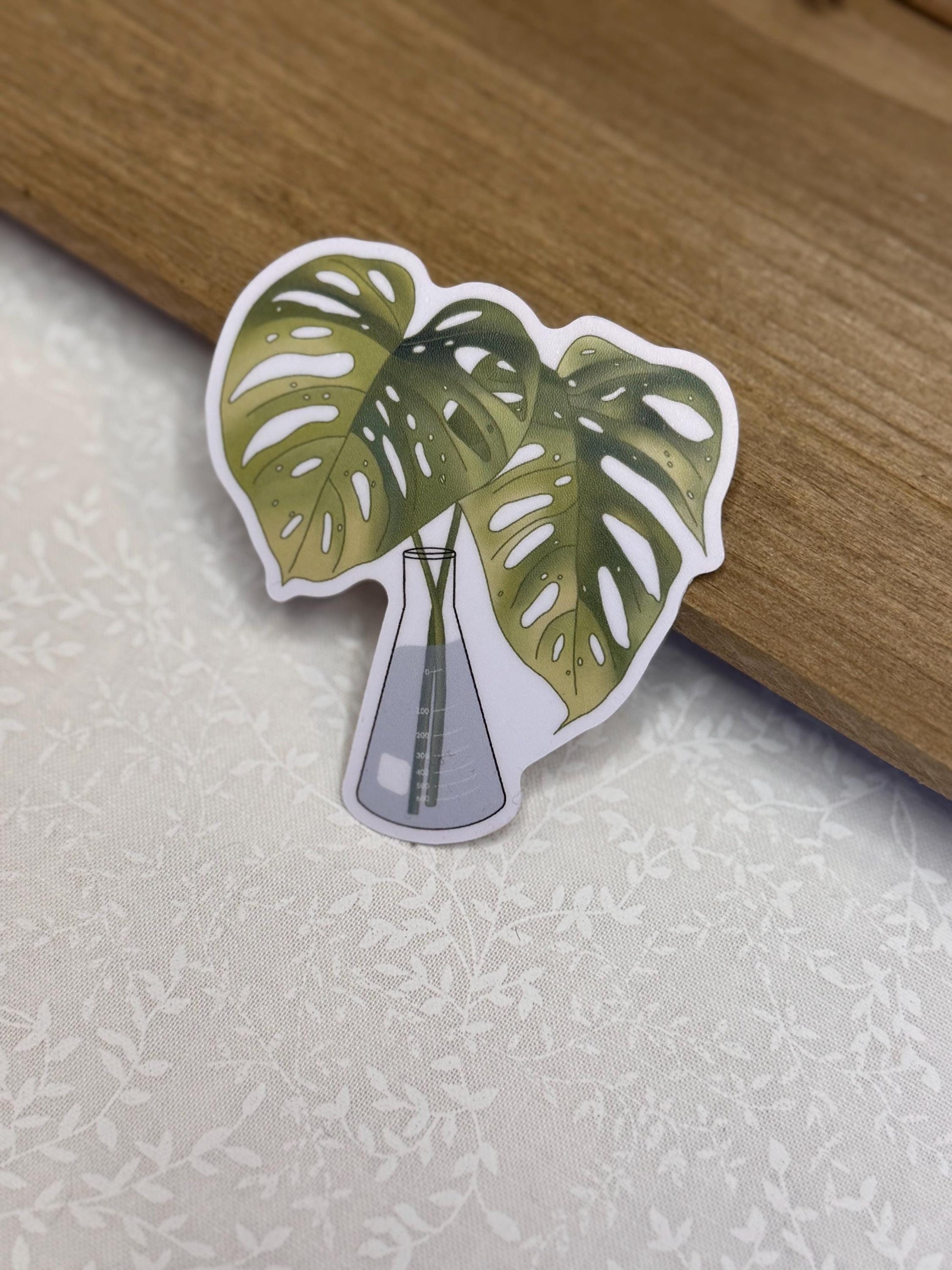 Erlenmeyer flask with monstera plant - science vinyl sticker